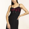Könnyű viszkóz anyagból készült pizsama, amely egyszerre kényelmes és elegáns. Dekoltázsnál, mellrész alatt és ujjainál csipkével van díszítve.