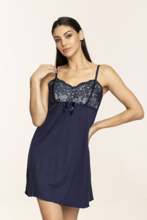 Könnyű természetes viszkóz anyagból készült hálóing. Vékony állítható vállpántokkal, dekoltázsánál és mellrész alatt finom tapintású csipkével, színben hozzáillő masnival díszítve. Combközépig érő kényelmes fazon.