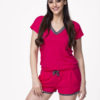Kiváló minőségű pamutból készült, kerekített nyakú pizsama, amely anyagából készült fodrokkal és aranyos mintával van díszítve.