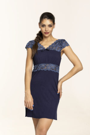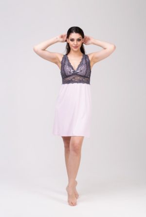 - Könnyű viszkóz anyagból készült hálóing. Dekoltázsnál, mellrész alatt és ujjainál csipkével van díszítve.