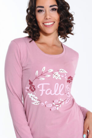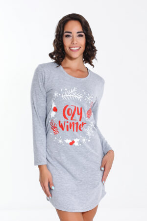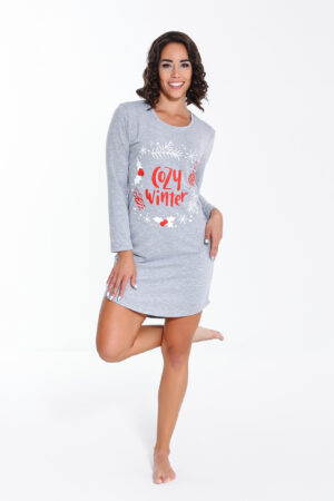 - Kényelmes póló hálóing. Kerek nyakkivágással, mintával díszítve.