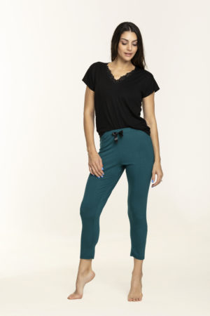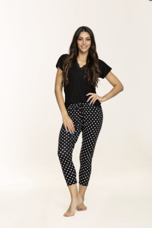 - Rejtett zsebes, capri fazonú minőségi pamutból készült pizsama.