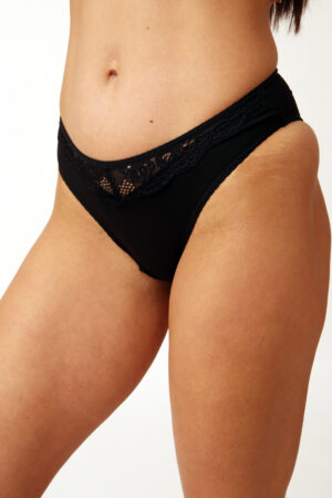 Klasszikus fazonú pamut női alsó, elől csipke díszítéssel.